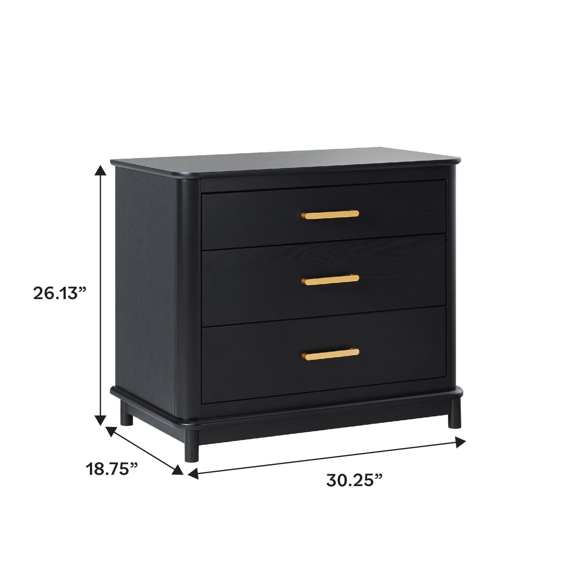 Walker Edison 3-Piece Contemporary Wood Bedroom Set, Solid Pine King Bed with Upholstered Headboard, 2 Ultra-Easy Drawer Assembly 3-Drawer Nightstands with Brass Hardware, Set of 3, Black