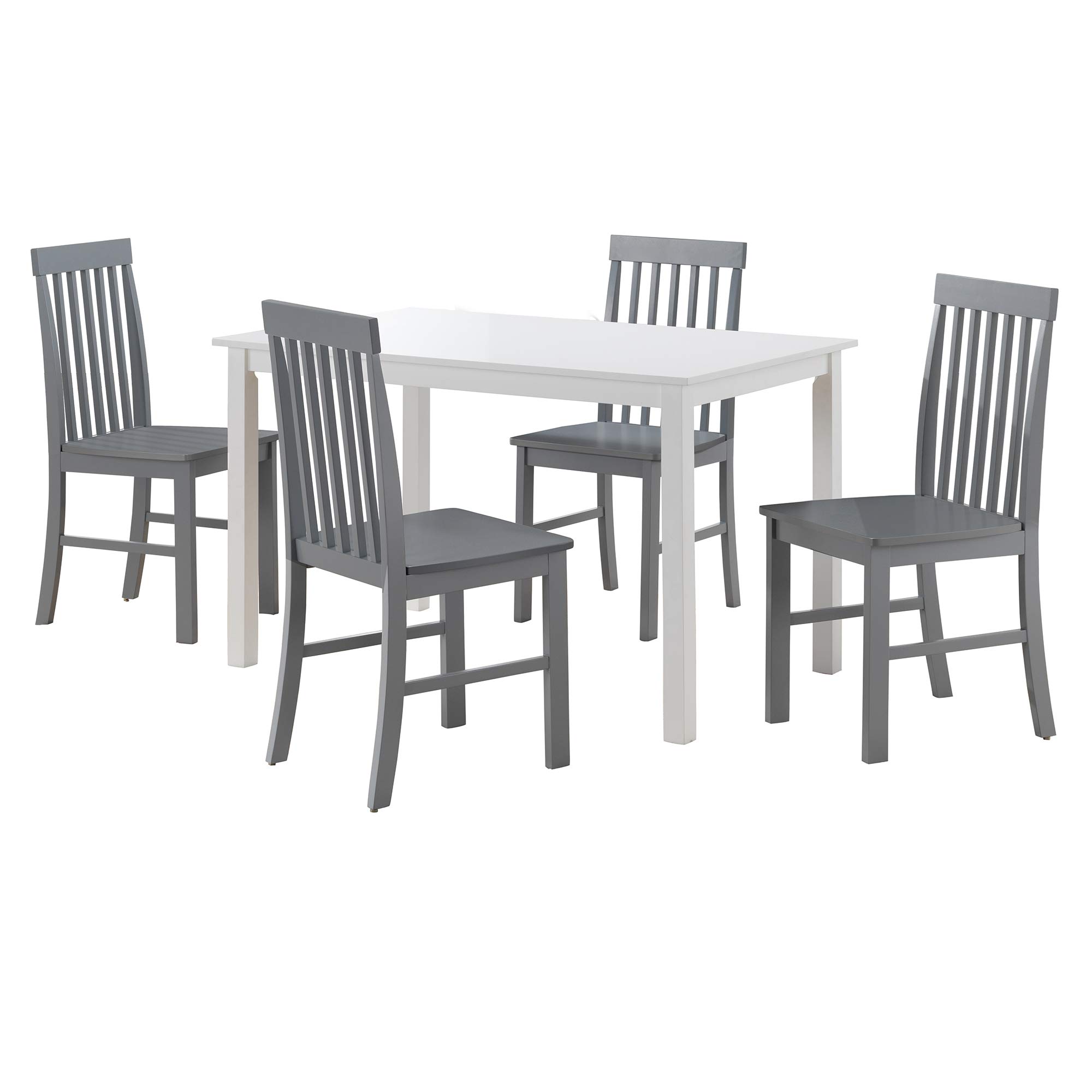 Walker Edison 4 Person Modern Farmhouse Wood Small Dining Table Dining Room Kitchen Table Set 4 Chairs Set, 48 Inch, White and Grey