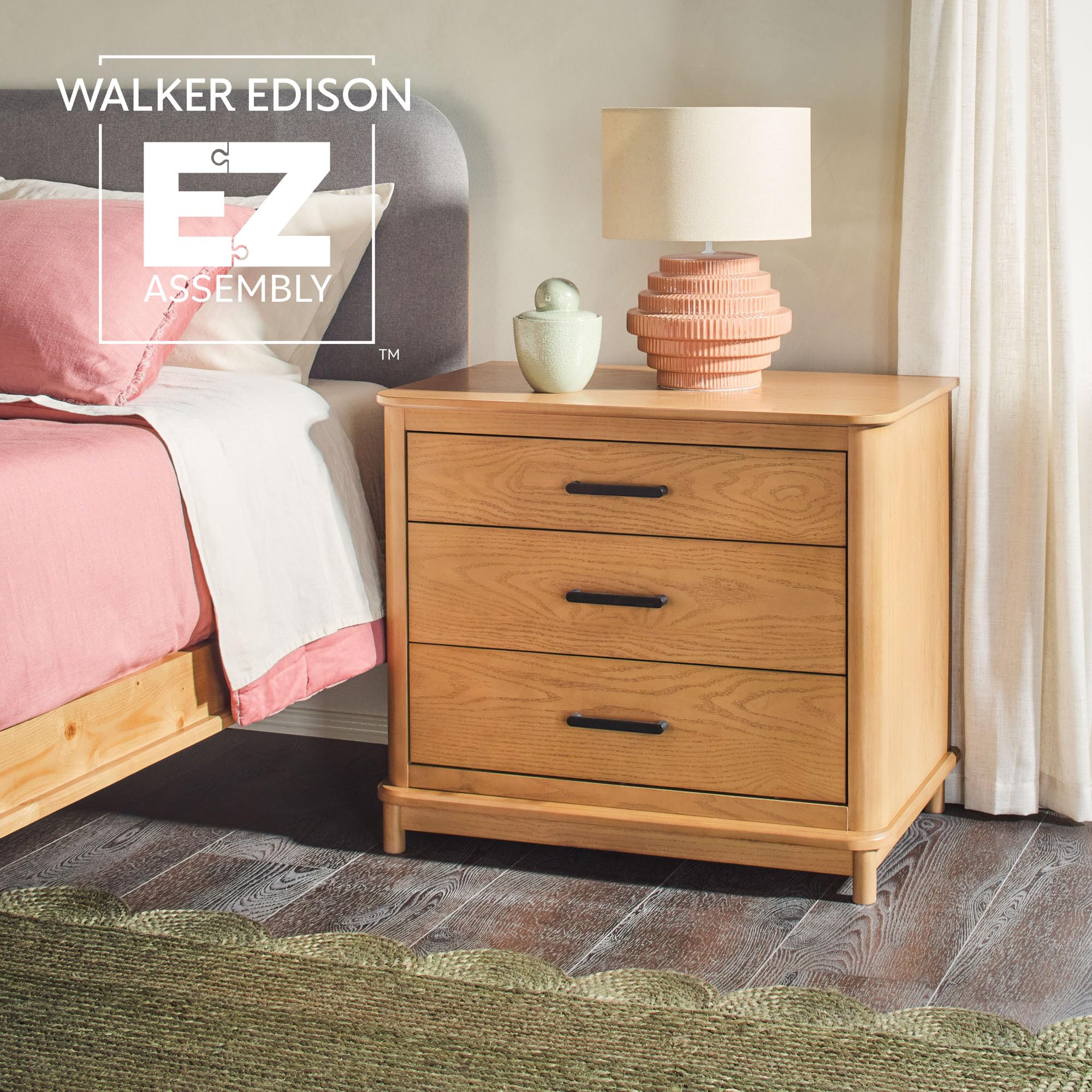 Walker Edison Contemporary Solid Red Oak Veneer 3-Drawer Nightstand, Easy to Assemble Drawers, Storage for Bedroom, 3-Drawer Nightstand, 30.25 Inch, English Oak