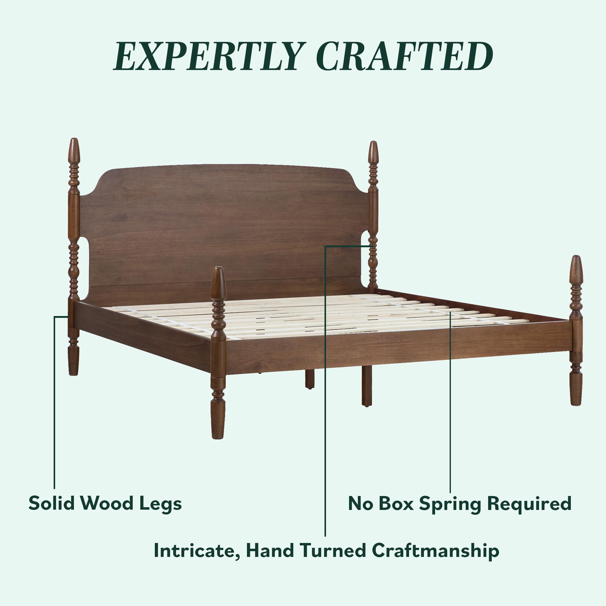 Walker Edison EZ Assembly Traditional Wood Spindle Post Bed, No Box Spring Bed Frame, Modern Farmhouse Bed, King Size, Dark Brown—