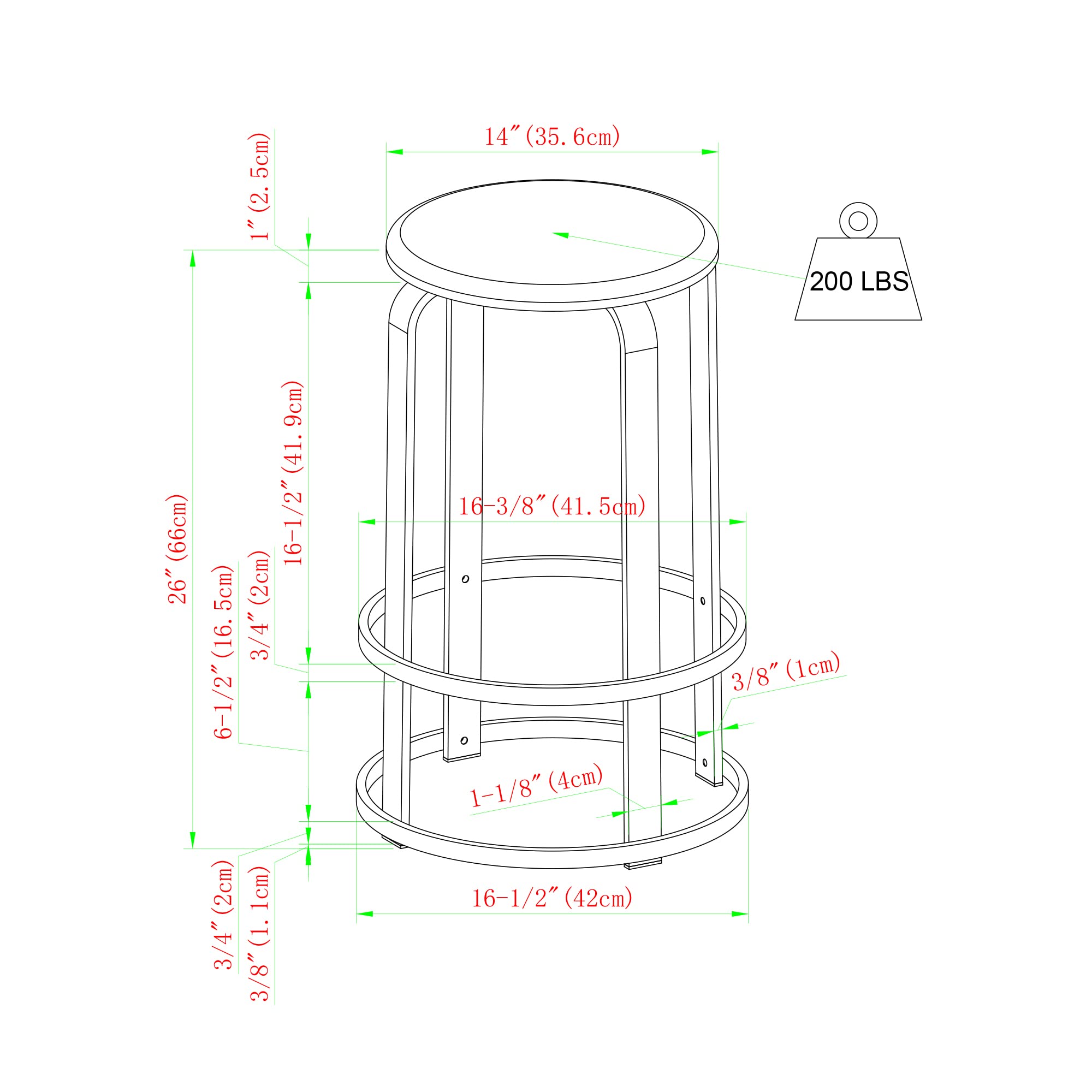 - Stool supports up to 200 pounds