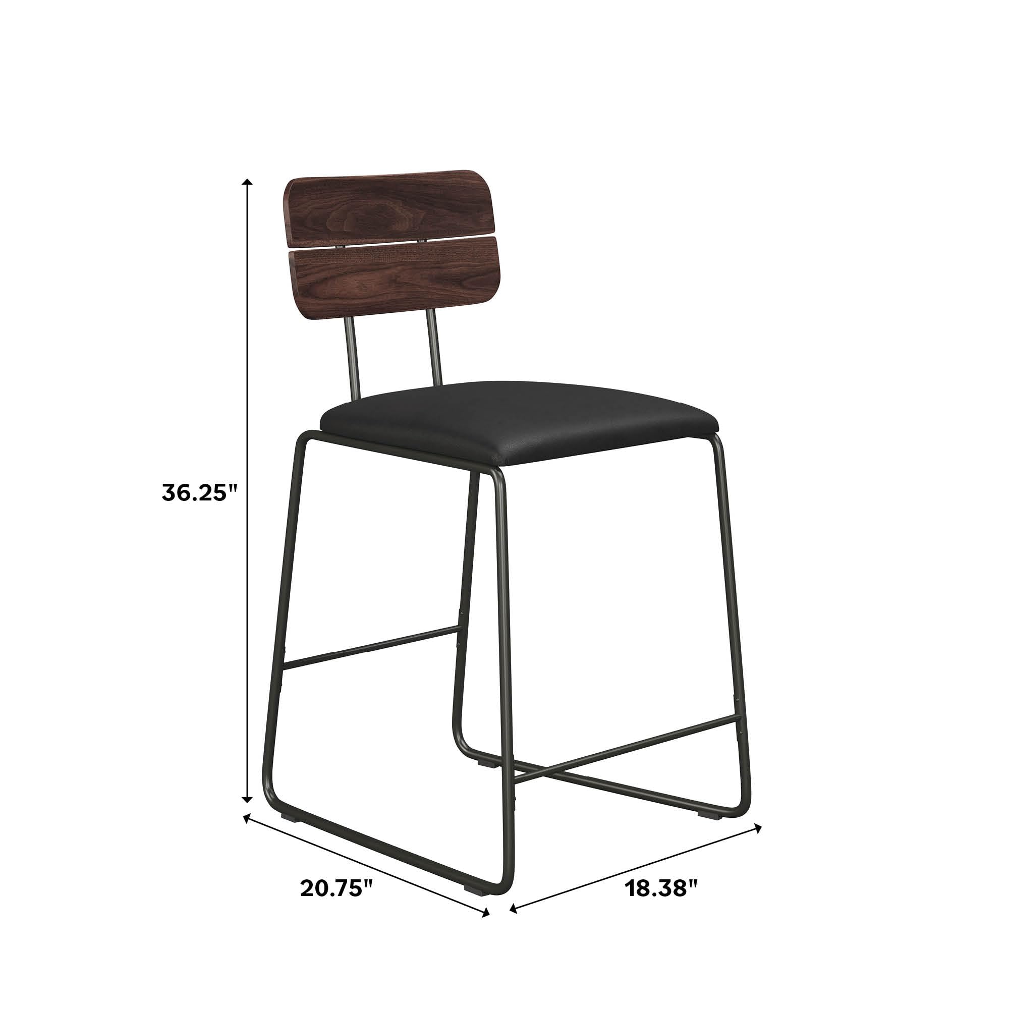 Walker Edison Modern 2-Piece Minimalist Counter Stools with Wooden Back, Set of 2, Black