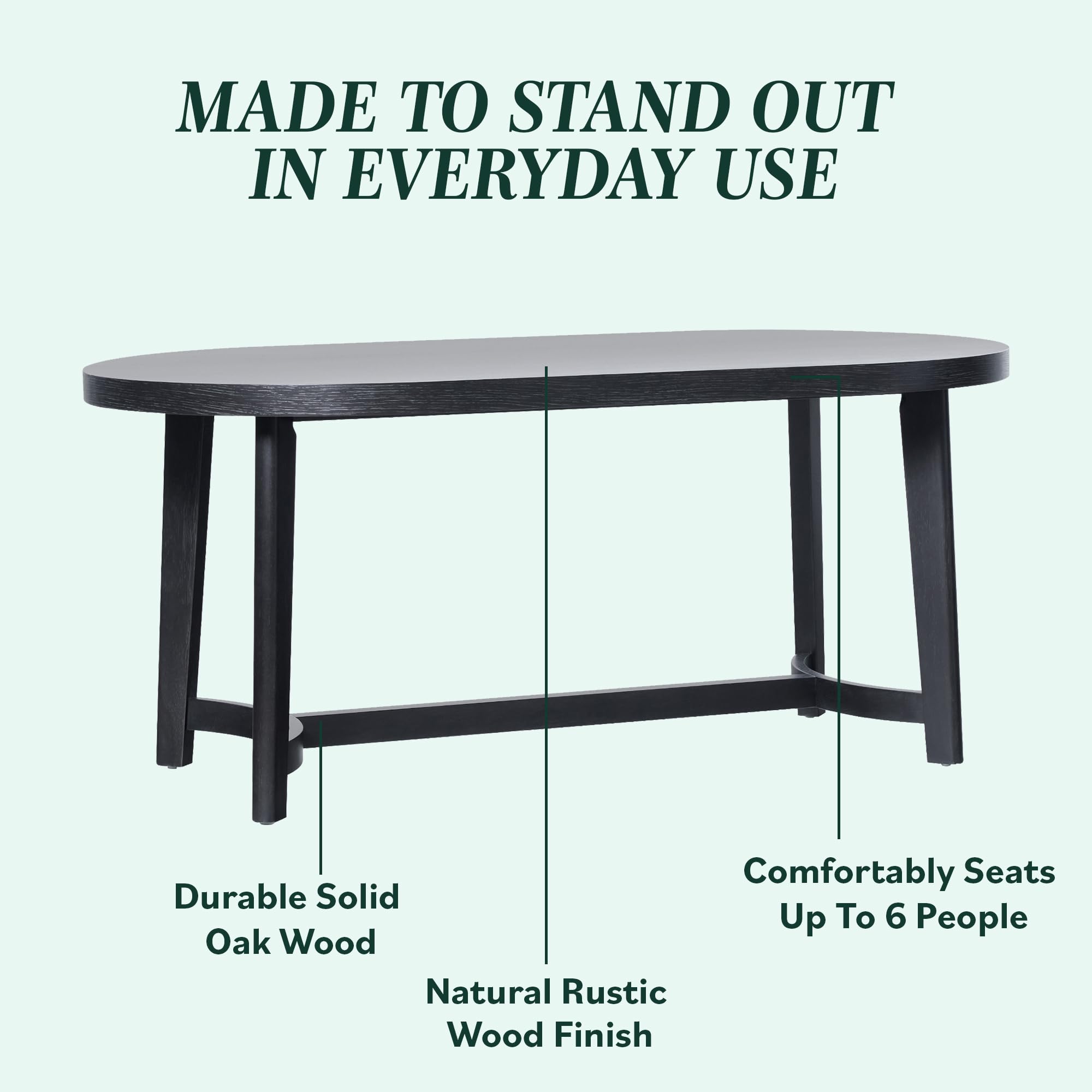 Walker Edison Modern Farmhouse Rustic Solid Oak Wood Oval Dining Table for 6 - Black Oak