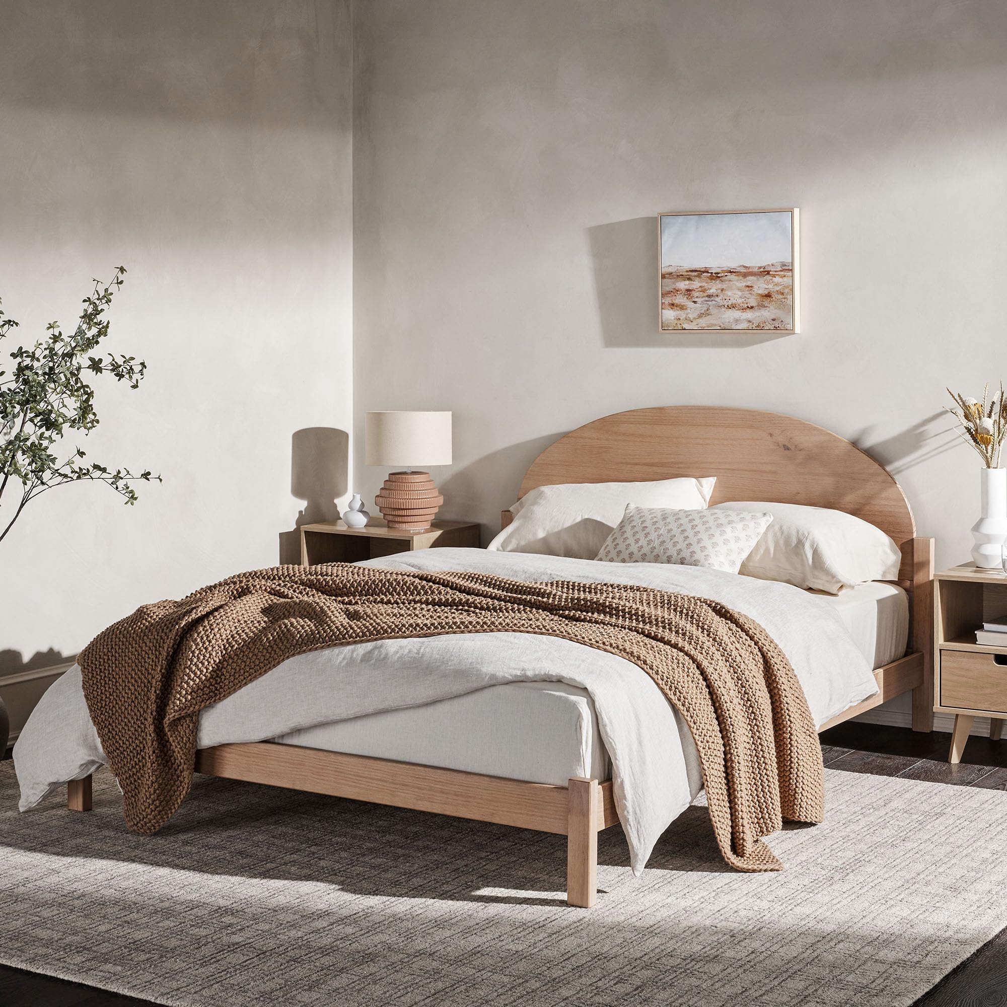 - Curved headboard brings soft lines to your room