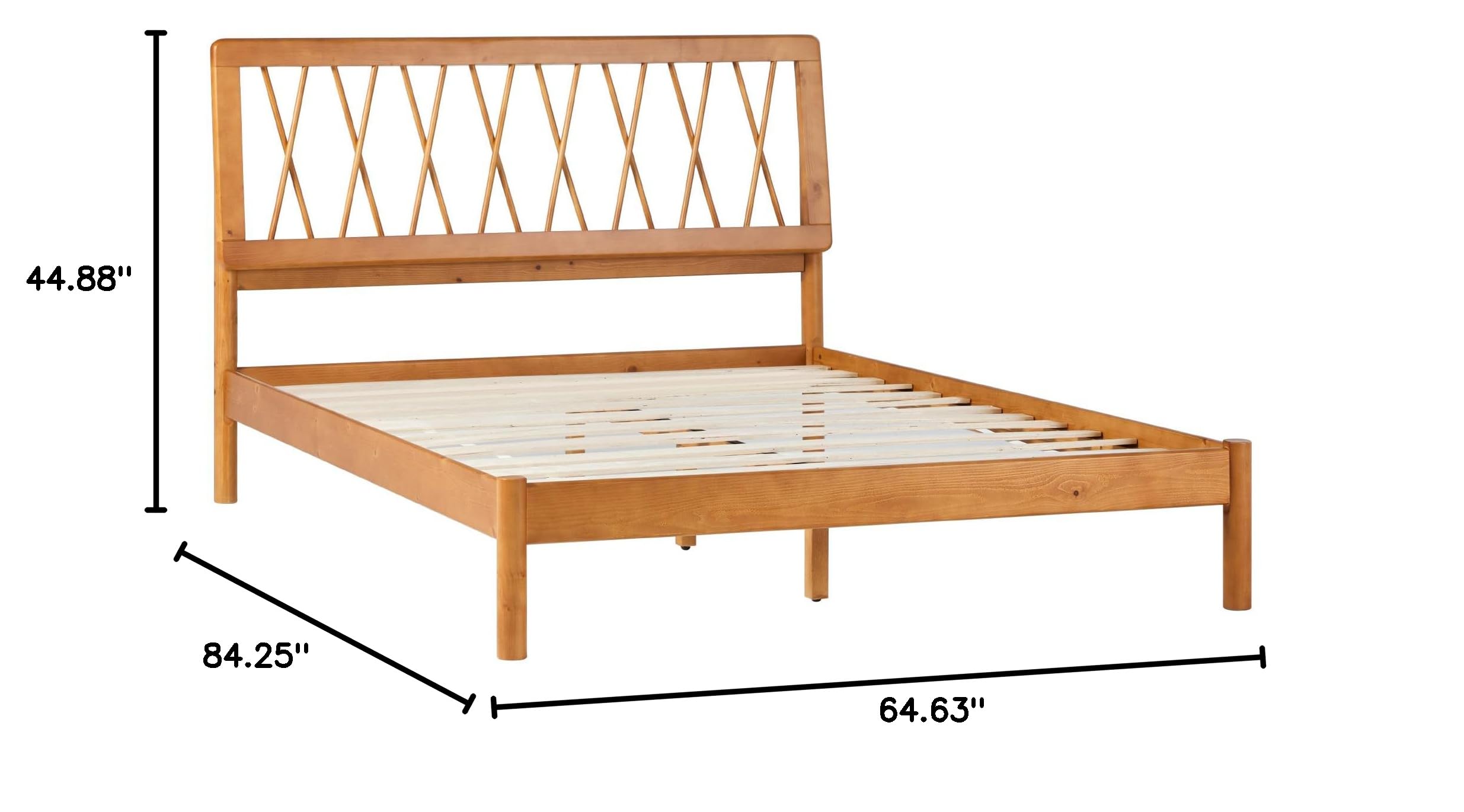 Walker Edison Queen Transitional Geometric X Pattern Headboard Solid Wood Bed, Queen Size, Caramel