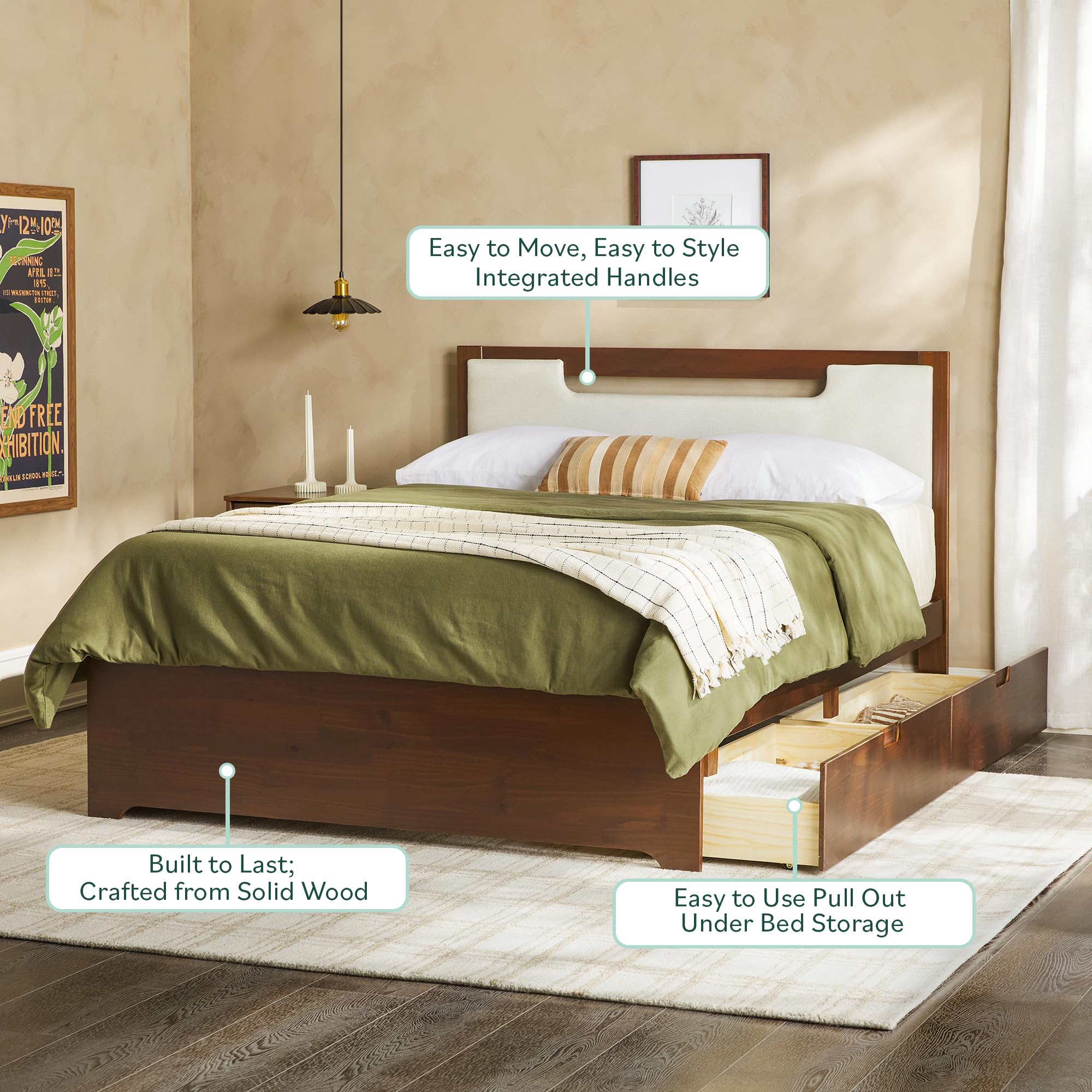 Walker Edison Sloane Upholstered & Solid Wood Bed with Storage Drawers, Queen, Walnut